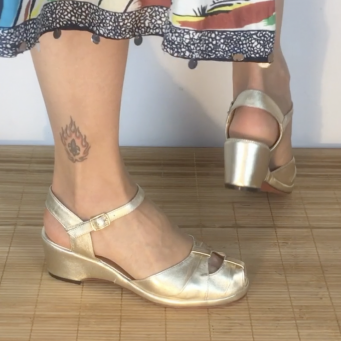I was unsure whether size 40 or 41 would fit me, so I ordered both and ended up keeping the smaller ones. My feet are medium in width and I found the bigger ones to be quite roomy on me – I like my shoes and all the straps to hug my feet perfectly so that the shoe does not move while dancing. The wedge itself is much lighter than I expected so it takes me some time getting used to, but they are super comfortable.