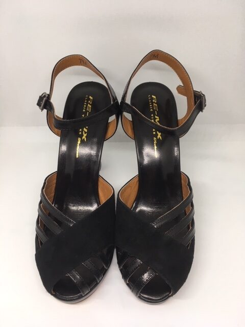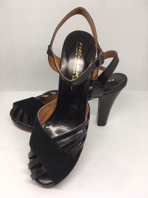 Rhonda is a stylish 1950s platform pump with asymmetrical strap details.