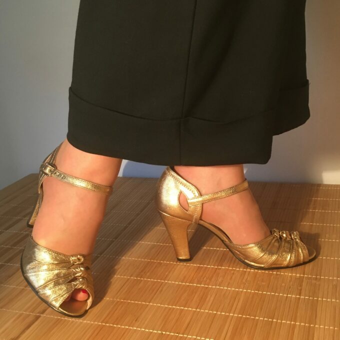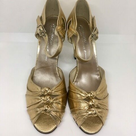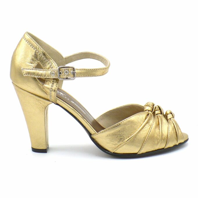 Ritz is a glamorous 1920’s replica high heel sandal with gathered and knotted leather vamp details.