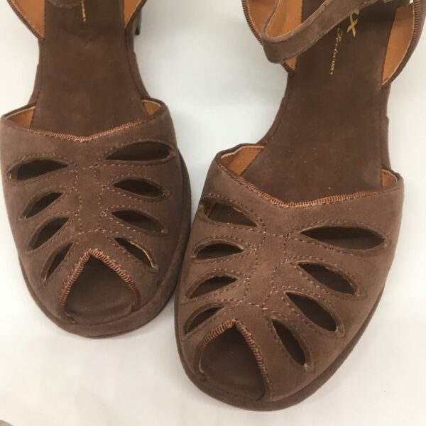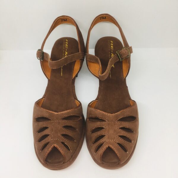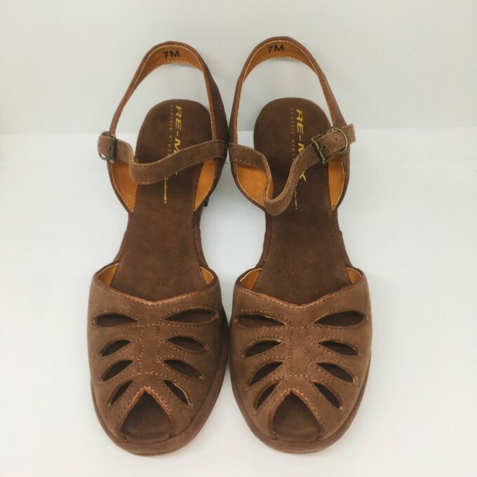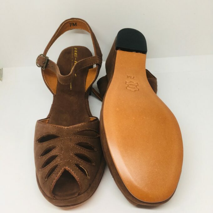 We have replicated every detail of this 1940’s style, from the perforations on the vamp, to the grosgrain fabric piping of the original and roller buckles.
