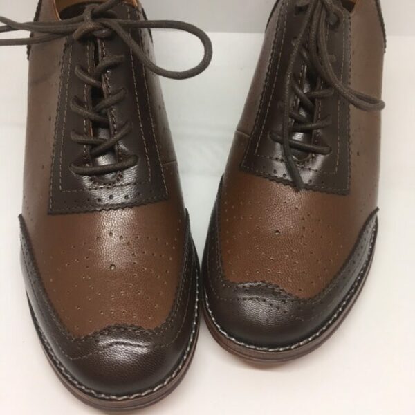 Boardwalk ist ein zweifarbiger sportlicher Damenschnürschuh („Oxford“) mit geschichtetem niederen Absatz und Lochmuster Details.