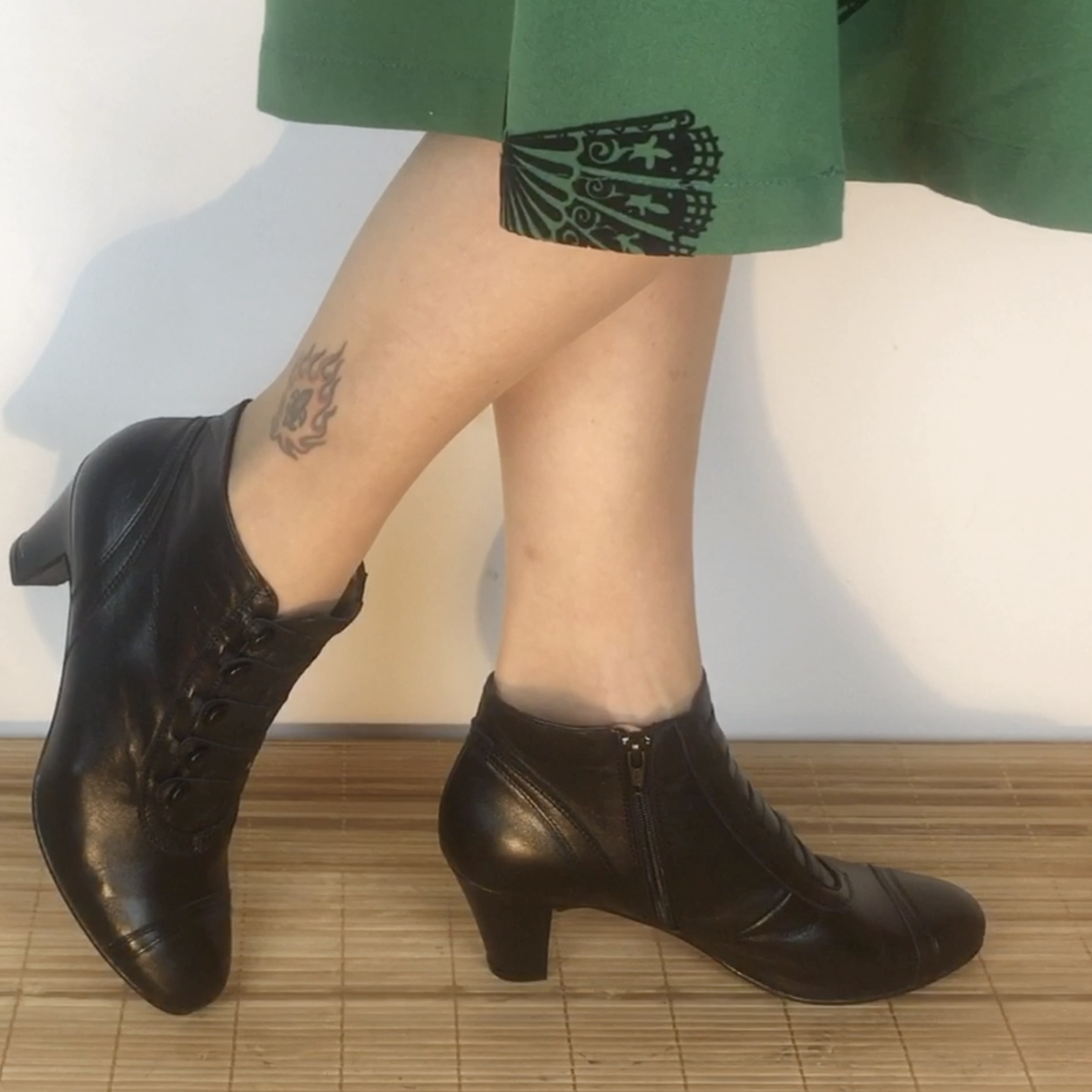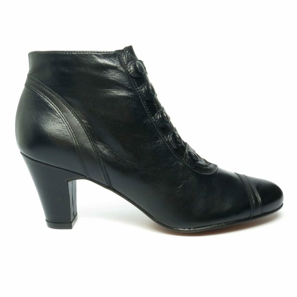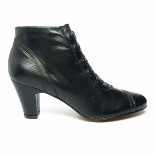 Cassie ist ein Stiefelchen mit dekorativer voll funktionsfähiger Knopfleiste und Seitenzipp, angelehnt an Modelle des frühen 20. Jahrhunderts.