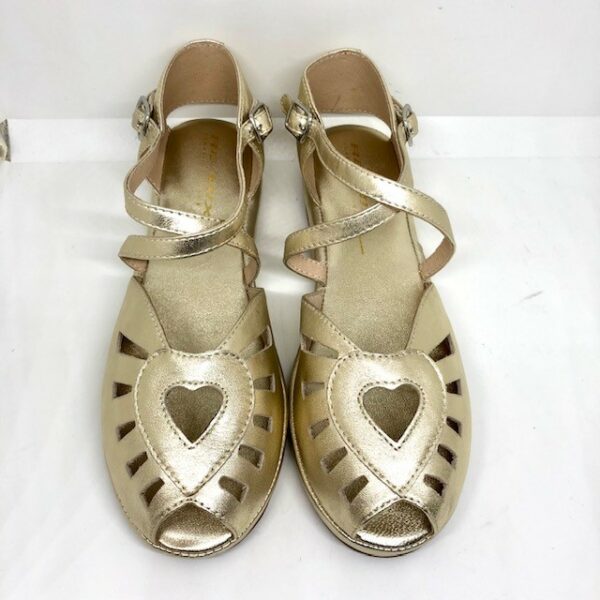 Corazon ist eine flache Sommersandale aus den 1950ern mit Kreuzriemen und Herz-Cutout.
