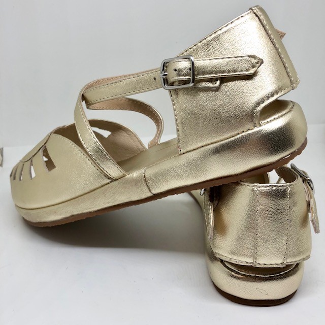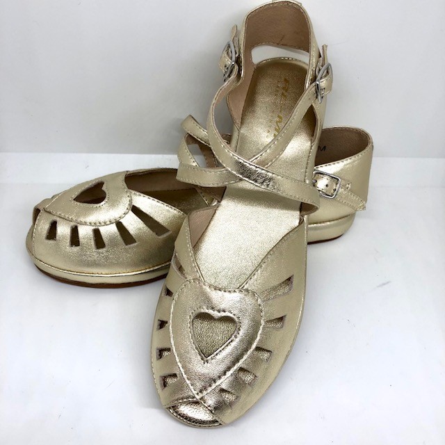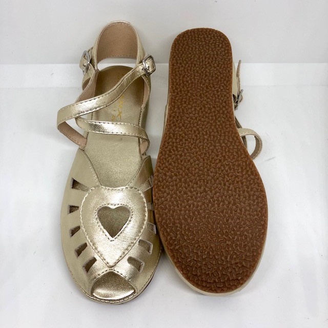 Fröhliche Sommer-Sandale aus den 1940/50ern mit flacher Laufsohle, Herz und hübschem Kreuzverschluss.