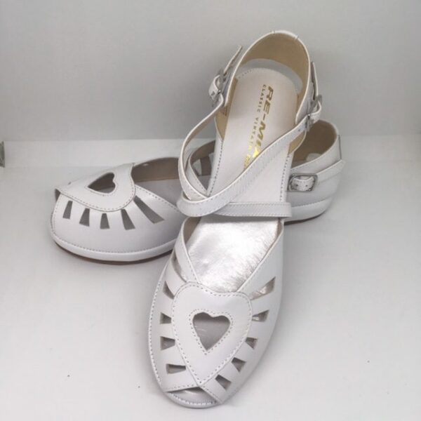 Corazon ist eine flache Sommersandale aus den 1950ern mit Kreuzriemen, Herz-Cutout und bequemer Laufsohle.