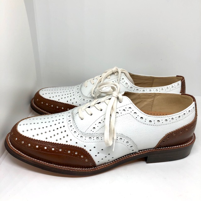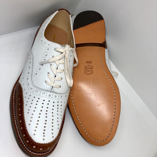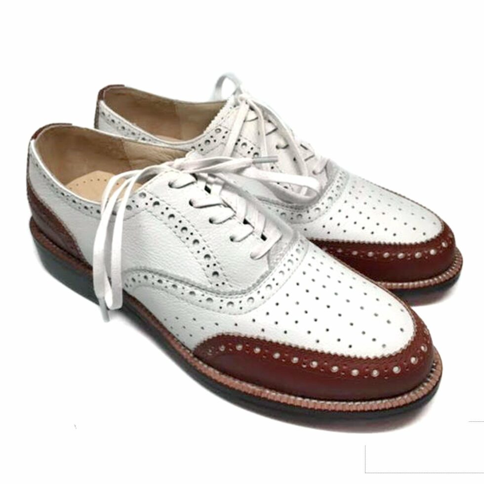 Fairway braun/weiß ist unser sportlicher Golf-Oxford mit aufwendiger Perforierung.