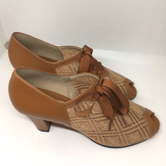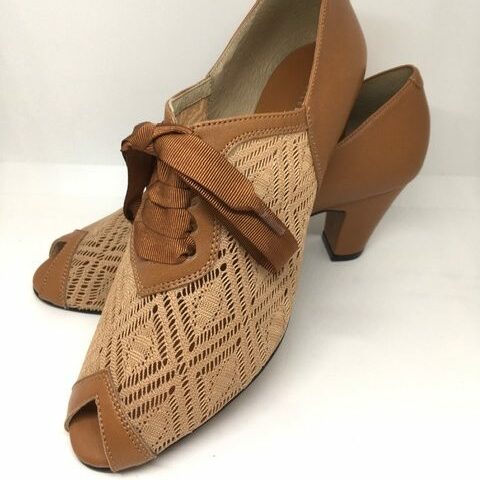 | Dekade, Farbe, Absatz | 1930, 1940, Absatzhöhe 6–7,5 cm, geschlossene Ferse, Ledersohle, Schuhe mit Absatz, Zehenloch |