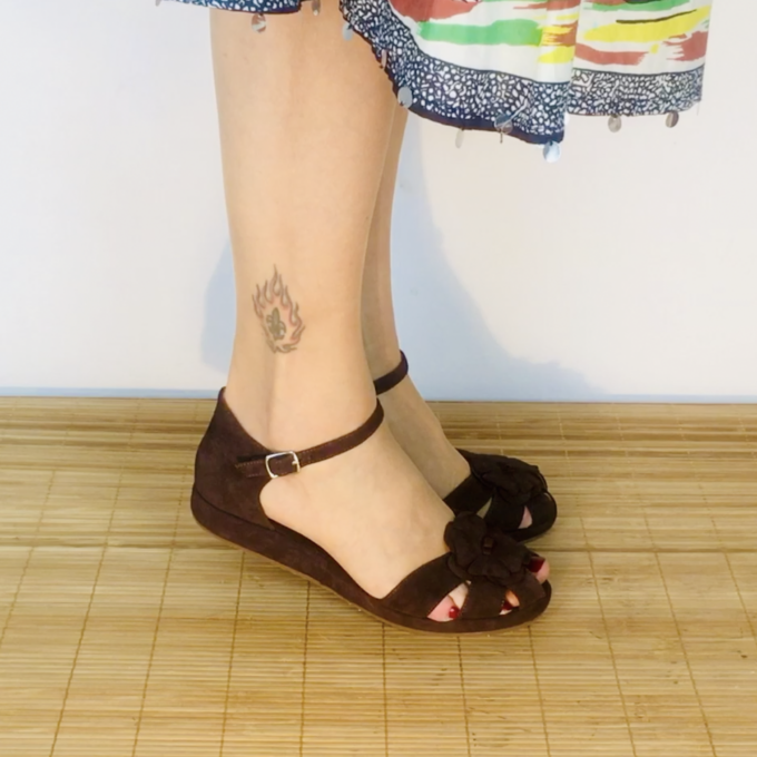 Mein jahrelanger Wunsch nach einer flachen, weichen etwas verspielten Sandale mit rutschfester Sohle ist endlich erhört worden! Die Blume gibt dem Schuh einen Vintage Touch. Der Riemen hätte ein wenig breiter sein können.