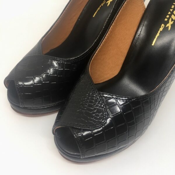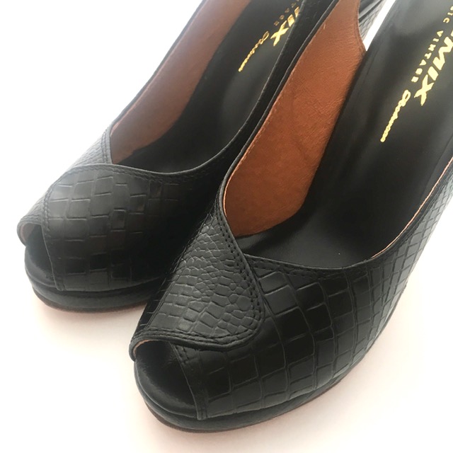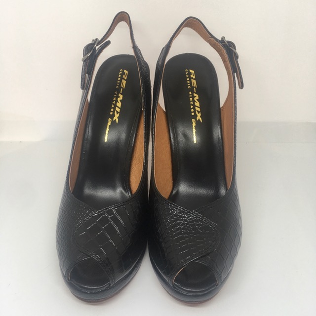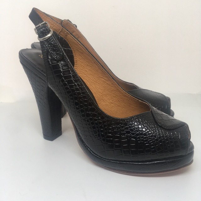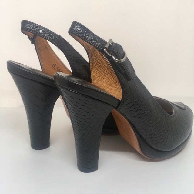 Slingback Pump aus den späten 1940ern mit klassischer Croco-Prägung und Plattform Sohle.