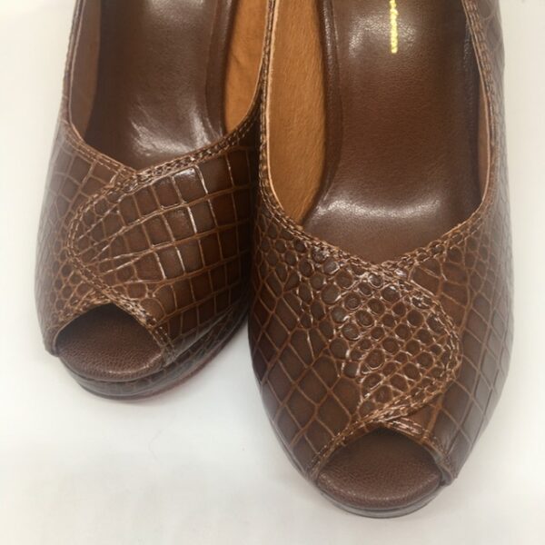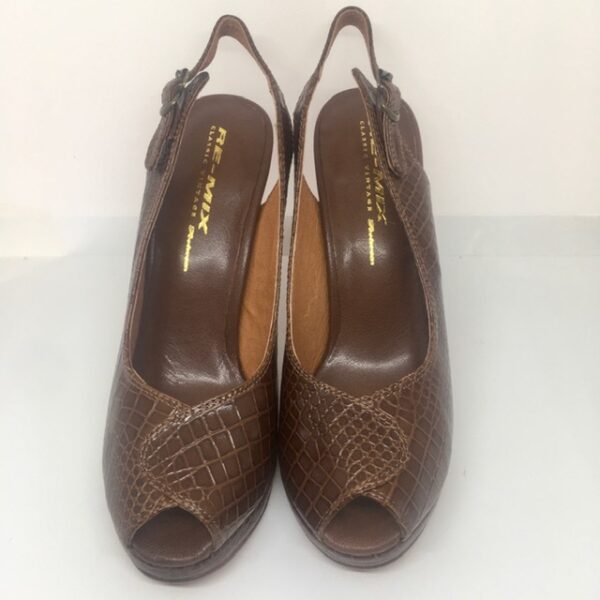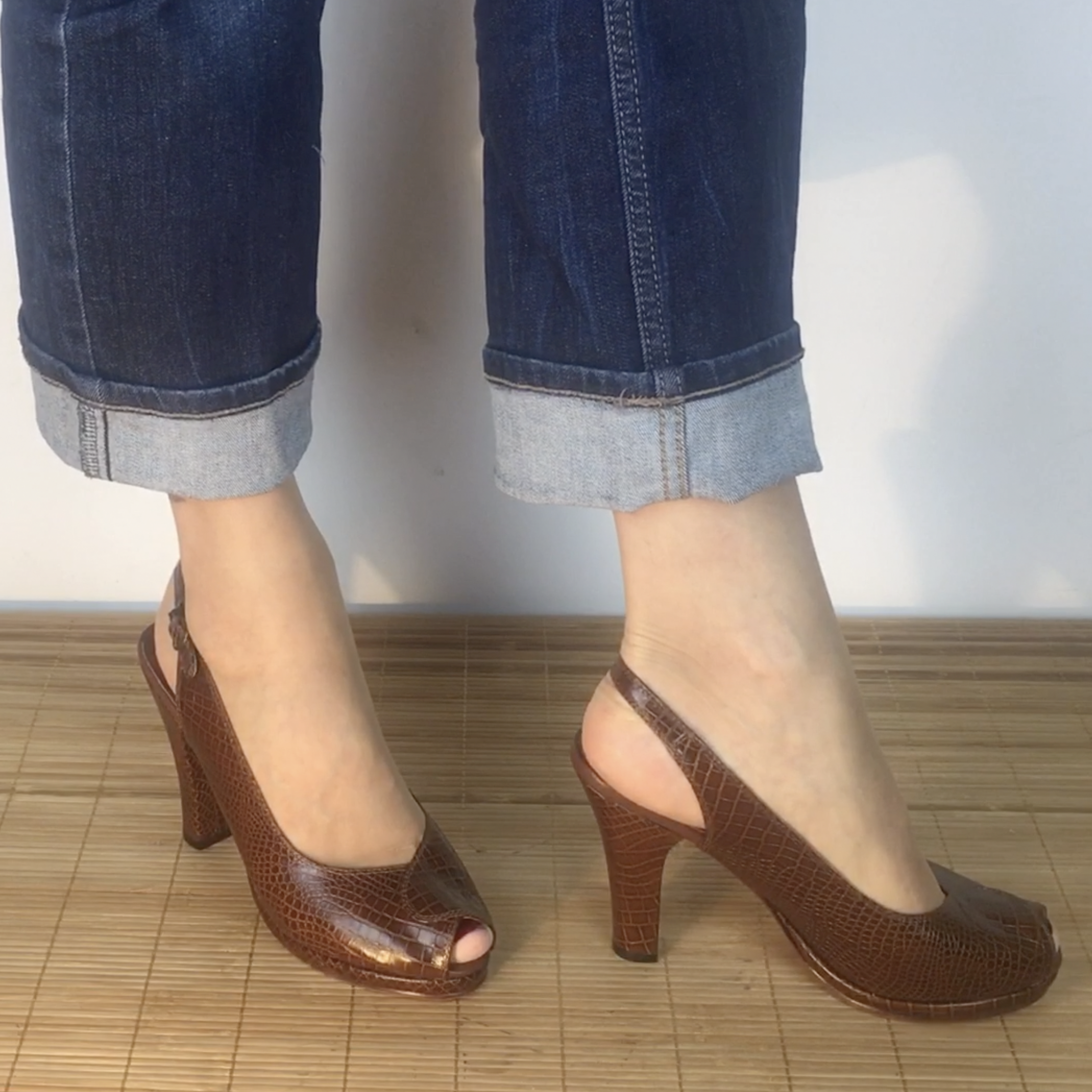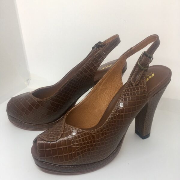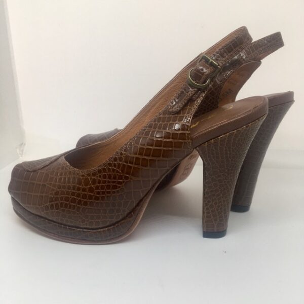 Slingback Pump aus den späten 1940ern mit klassischer Croco-Prägung und Plattform Sohle.