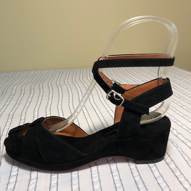 1950er Keilsohlen-Sandale mit hübscher Zehenpartie und Set von zwei austauschbaren Riemen.